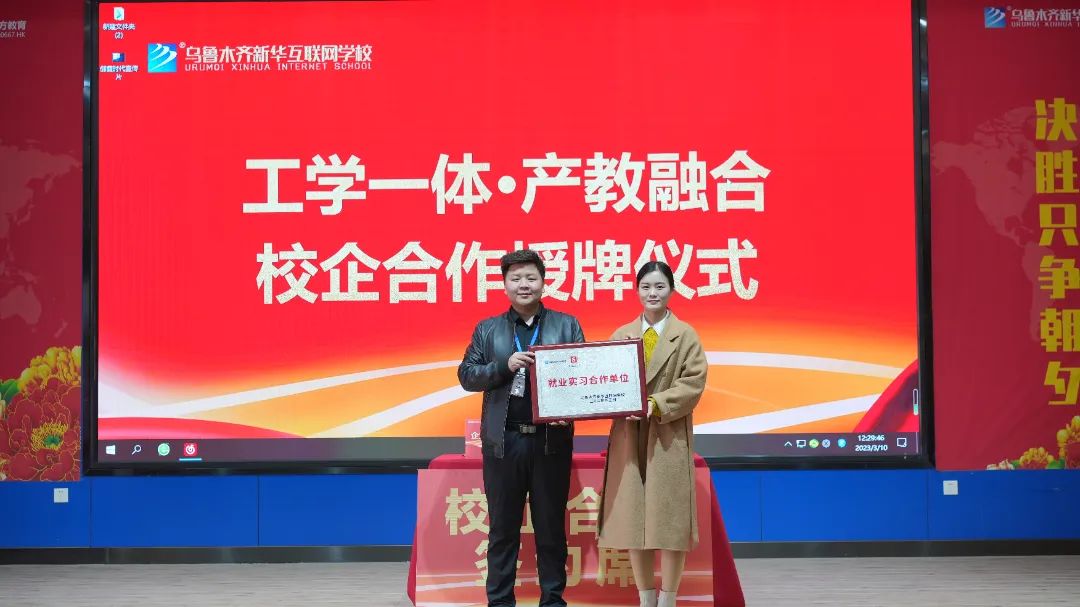 为推动产教融合,深化产教融合,凝聚人才力量,2023年3月10日乌鲁木齐新华互联网学校与创鑫时代广告科技有限公司进行产教融合签约授牌仪式。