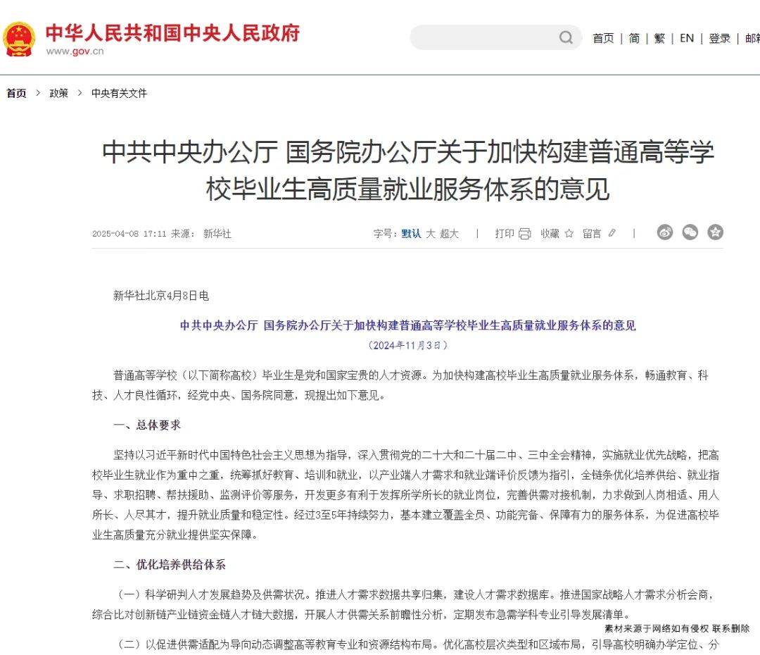 2025年4月,中办、国办《关于加快构建普通高等学校毕业生高质量就业服务体系的意见》进一步明确政策导向,同时将 “双高计划” 升级为 “职业教育提质培优工程”,中央财政投入超800亿元,重点支持对接产业需求的高水平专业群建设,实现 “技能与学历等值、职业与学术互通”。