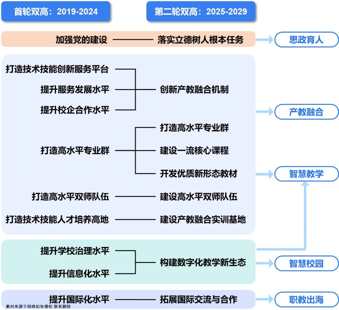 近日,教育部、财政部联合发布了《关于实施中国特色高水平高职学校和专业建设计划(2025—2029年)的通知》(教职成〔2025〕1号),标志着新一轮“双高计划”的正式启动。