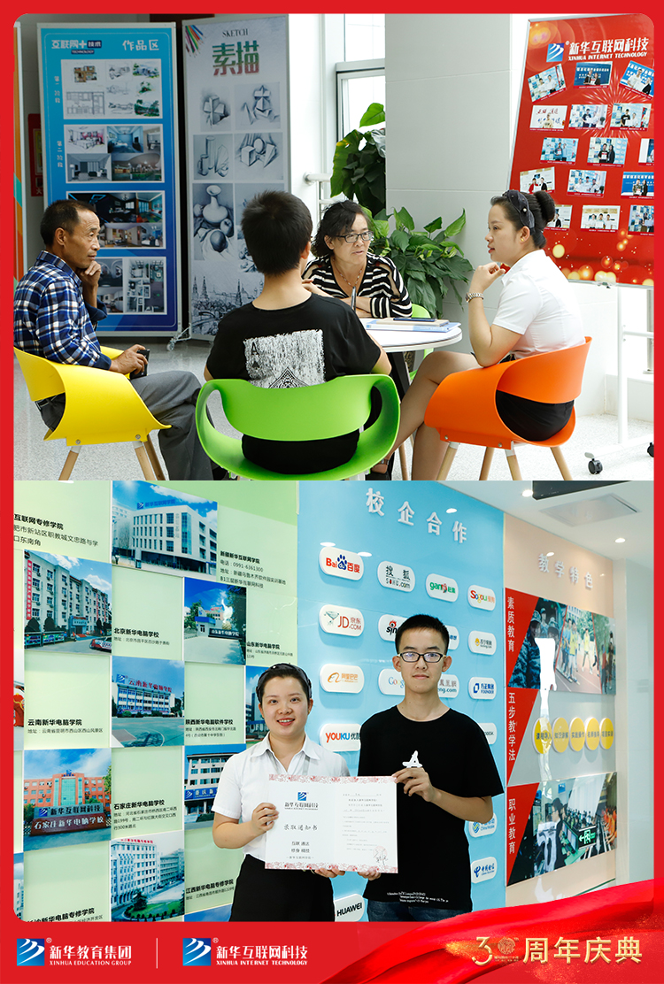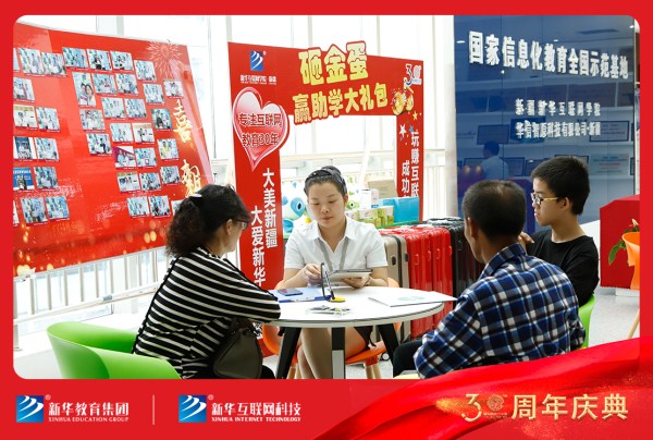新疆新华互联网学院在8月16日当天举办了“砸金蛋赢助学礼包,喜迎新华教育集团30周年”主题活动。吸引了一批热爱互联网学习的同学到校报名咨询。