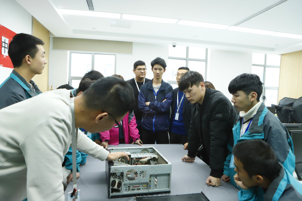 老师向学生讲解机箱零部件
