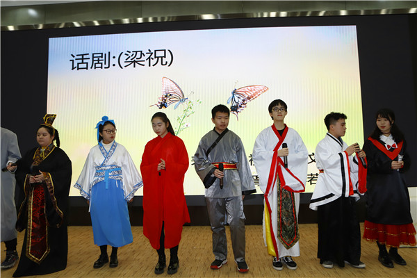 接下来,学生会的同学们带来了全新改编的话剧“梁祝”,轻松诙谐的表演将现场氛围推向了一个小高潮!