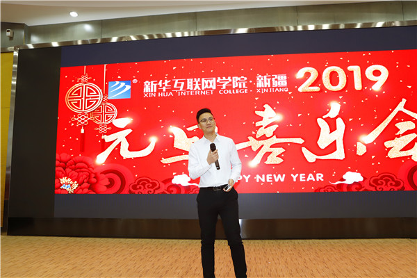 晚会在主持人激昂的开场词中拉开序幕,随后新疆新华互联网学院教务部负责人李翔老师代表全体老师发表了新年致辞,在新的一年里希望新华能培养出更多优秀的学子,同样也祝福同学们在新华能收获技能和成功!