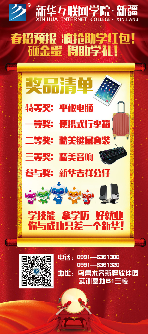 现在来新华参与春招预报名,即可砸金蛋获得助学大礼!丰厚的礼品再加上一身的技艺,犹豫的你还在等什么呢?快快来新疆新华学习热门的互联网专业吧!
